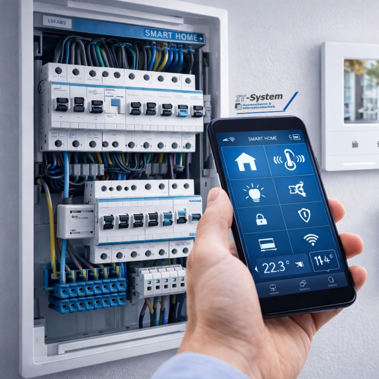 Durch den Einsatz moderner Gebäudeleittechnik lassen sich Funktionen zentral steuern und komfortabel bedienen. Ob Beleuchtung, Heizungssteuerung oder Türkommunikation – viele Anwendungen können flexibel gesteuert werden, auch aus der Ferne.